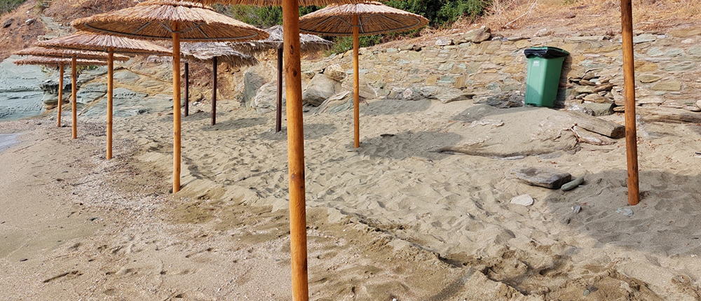 2023 September: the part to the right of the rocks is still suitable for nudism. Some days a few textiles will come to this part of the beach, but do not seem to bother. No sun-beds in this part of the beach, but there are fixed parasols.