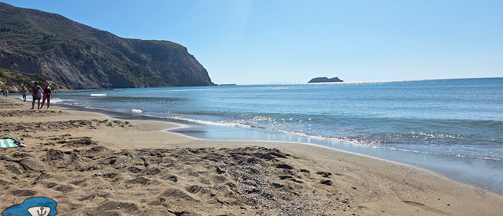Swimming is perfect, while the slope in can be tricky as its loose tiny stones you are greeted with a sand sea bed that can easily be walked 'til waist height. The water can be cool but welcoming after 2 to 3 hrs in the sun.