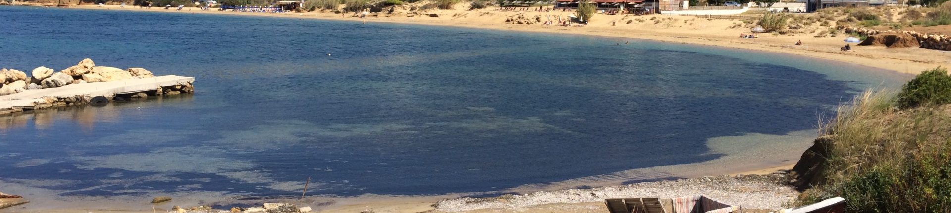 We parked close to the most southerly, Eglina Beach which is only 100m wide, sandy and very busy with a beach bar, sunbeds and umbrellas. It was clearly 100% textile so we walked round to Megali Ammos, just 100m north.
