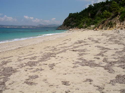 2013 August: We went to this beach on a Saturday, to find a quiet place. It was indeed. We parked our motorbike right after the new monastery (road was too bad to proceed) and walked toward the beach. We arrived at 11am and the beach was deserted. Amazing! This beach is great! We placed ourselves on the right part of the beach and stripped off. During the day some other people arrived (3 or 4 couples): all nudists excepting for a couple of textiles which later stripped off, trying naturism as soon as they realized that the beach was completely naturist. If you don't mind walking for 15/20 minutes (path is partly shadowed by trees) this is the best place to enjoy naked sunbathing and swimming. A real paradise!
