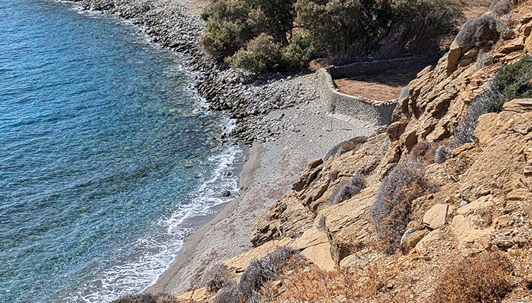 From Psili Ammos you can access Hochlakas. Contrary to the current information at the site, access did not look easy: you can see it´s a very steep path, where nothing protects you from a fall. I didn't try it but my partner did and confirmed it was not exactly safe, adding that the only advantage of Hochlakas would be that it's more secluded and presumably with less textiles, but it is smaller and not more beautiful than Psili Ammos to justify the trouble