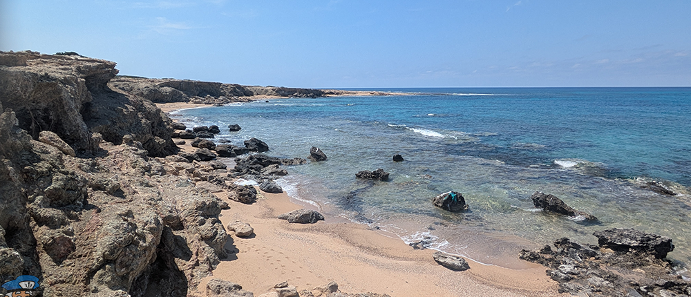 Tjioni beach is a essential a bay with flat rock, but there are couple of sections of sandy/pebble beach. Slightly further north, (about 200m) is another little beach which is a little off the main road (track) 35°02'43.8"N 32°16'28.7"E . Further still from Tjioni beach (approx 1.2kM) 35°03'18.7"N 32°16'24.5"E there's another small bay with sandy sections of beach. This beach is more secluded and not overlooked from passing vehicles.